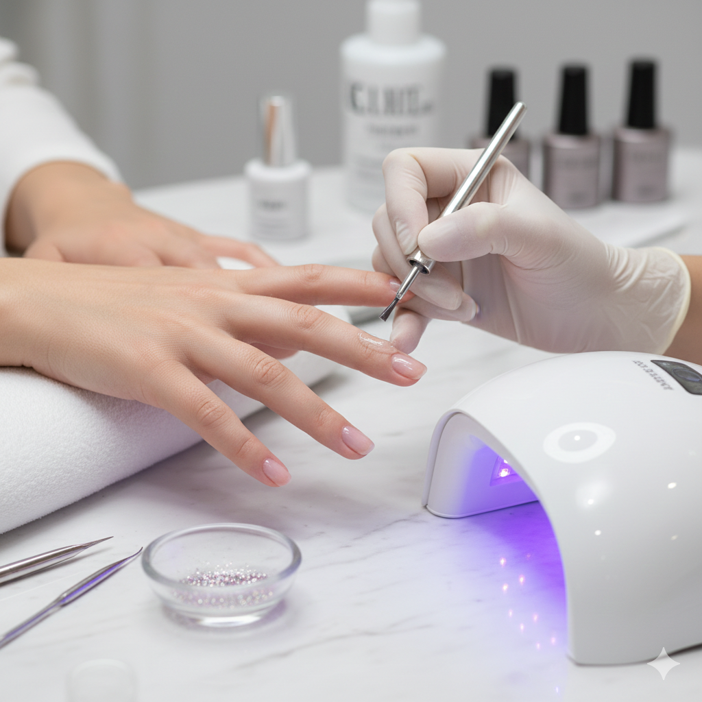 Tırnaklar temizlenir, yüzey hafifçe pürüzlendirilir ve primer uygulanır.